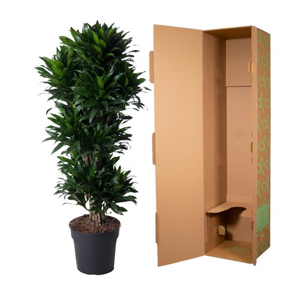 De Dracaena Compacta vertakt van 140 cm is een sterke, compacte kamerplant met meerdere stammen en glanzende, donkergroene bladeren. Perfect voor wie houdt van rust, symmetrie en een onderhoudsvriendelijke plant met body.