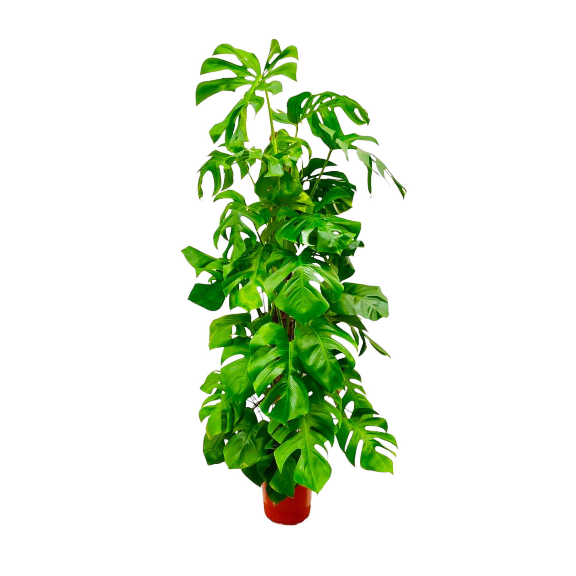 De Monstera Deliciosa XXL van 180 cm is een imposante kamerplant met uitgesproken ingesneden bladeren en een luchtzuiverend karakter. Ideaal voor grote ruimtes die mogen stralen met tropisch groen.